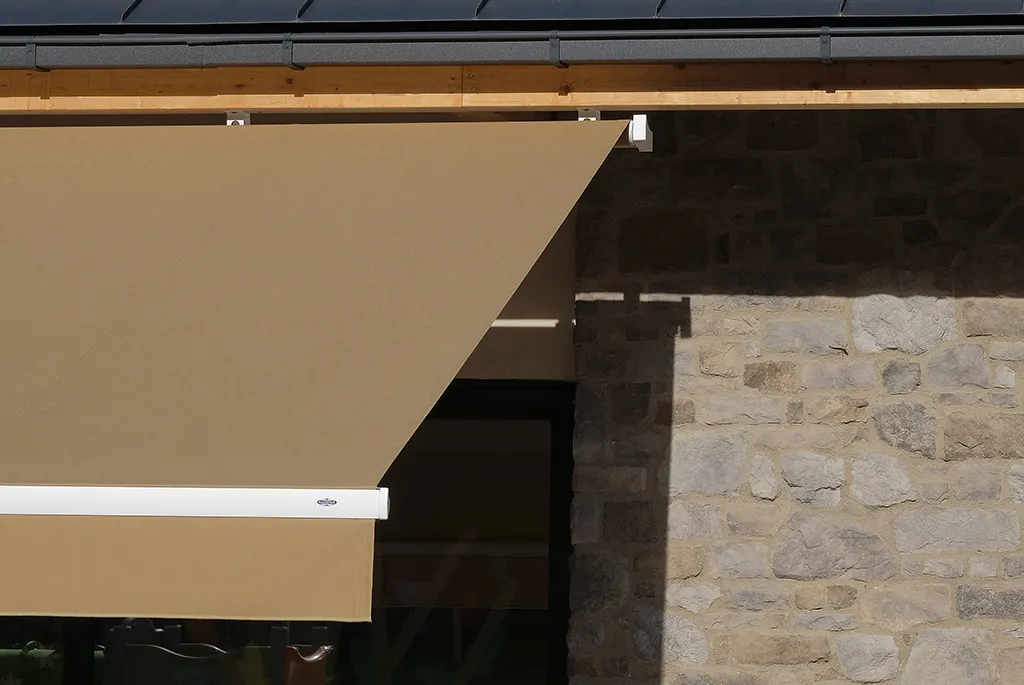 Bei geschlossenem Zustand sind Flex Markisen fast unmerklich: das Ergebnis einem nüchternen und raumsparenden Design aber auch einer fachgerechten Projektierung und Installation seitens dem Fachhändler Arte del Costruire. Die unter dem kleinen, überstehenden Vordach gestellten Markisen sind immer geschützt und beim Öffnen sorgen für eine natürliche Verlängerung des Gebäudeprofils. Darüber hinaus, ergänzt die Acrylgewebe von hellen und neutralen Farbtönen die Verwendung von Materialien wie Holz und Stein, welche in der Architektur Aostatals typisch sind und dem Gebäude ein elegantes und modernes Aussehen verleihen.